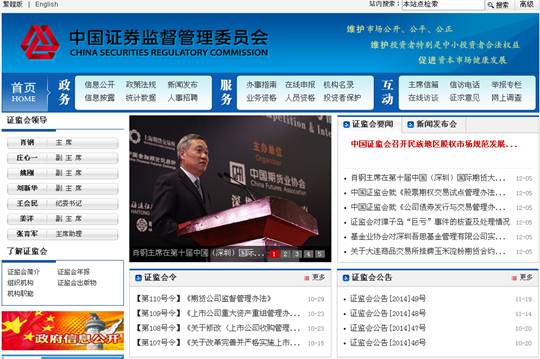 在“了解證監會(huì )-證監會(huì )年報”欄目,發(fā)布我會(huì )2013年度中英文年報,系統介紹我會(huì )監管職責與架構以及在監管改革、制度建設、創(chuàng )新發(fā)展、風(fēng)險防范、法制建設、稽查執法、投資者保護、對外開(kāi)放與國際合作等方面的工作情況。