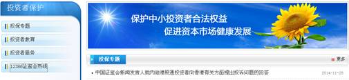 組織《國務(wù)院辦公廳關(guān)于進(jìn)一步加強資本市場(chǎng)中小投資者合法權益保護工作的通知》(國辦發(fā)〔2013〕110號)文件的宣傳解讀工作,積極宣傳、傳遞和深度解讀國務(wù)院高度重視中小投資者權益保護的政策信號。推出“滬港通投資者保護”頻道,發(fā)布滬港通各項政策法規,展示會(huì )系統各單位開(kāi)展滬港通培訓、調查情況,解答滬港通投資者訴求提出渠道、方式及流程等相關(guān)問(wèn)題。重點(diǎn)關(guān)注20多家網(wǎng)站財經(jīng)、證券、股票頻道信息,以及10多家網(wǎng)站股民社區論壇信息,匯集整理“12386”熱線(xiàn)和系統多家單位投資者互動(dòng)平臺信息,密切跟蹤投資者輿情動(dòng)向,了解投資者關(guān)注熱點(diǎn)。