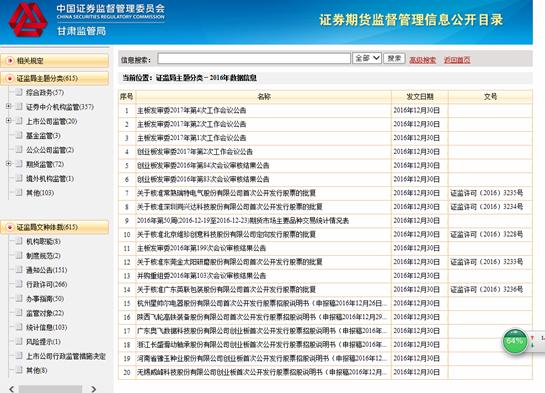 甘肅證監局2016年政府信息公開(kāi)工作年度報告