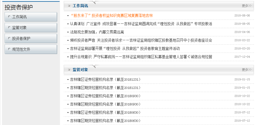 吉林證監局2018年政府信息公開(kāi)工作年度報告