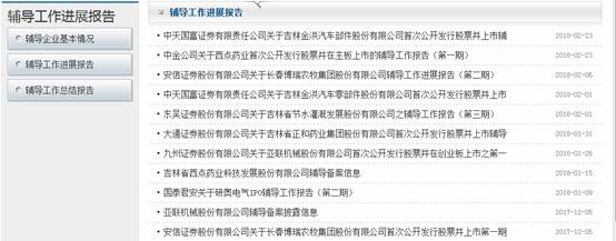 在“輔導企業(yè)信息”欄目發(fā)布信息40件。主要包括輔導企業(yè)基本情況、輔導工作進(jìn)展報告以及企業(yè)輔導備案信息等。