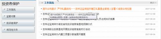 在“投資者保護”欄目發(fā)布信息45件,其中“工作簡(jiǎn)訊”子欄目發(fā)布信息6件,“監管對象”子欄目發(fā)布信息7件,“投資者保護”子欄目發(fā)布信息32件。